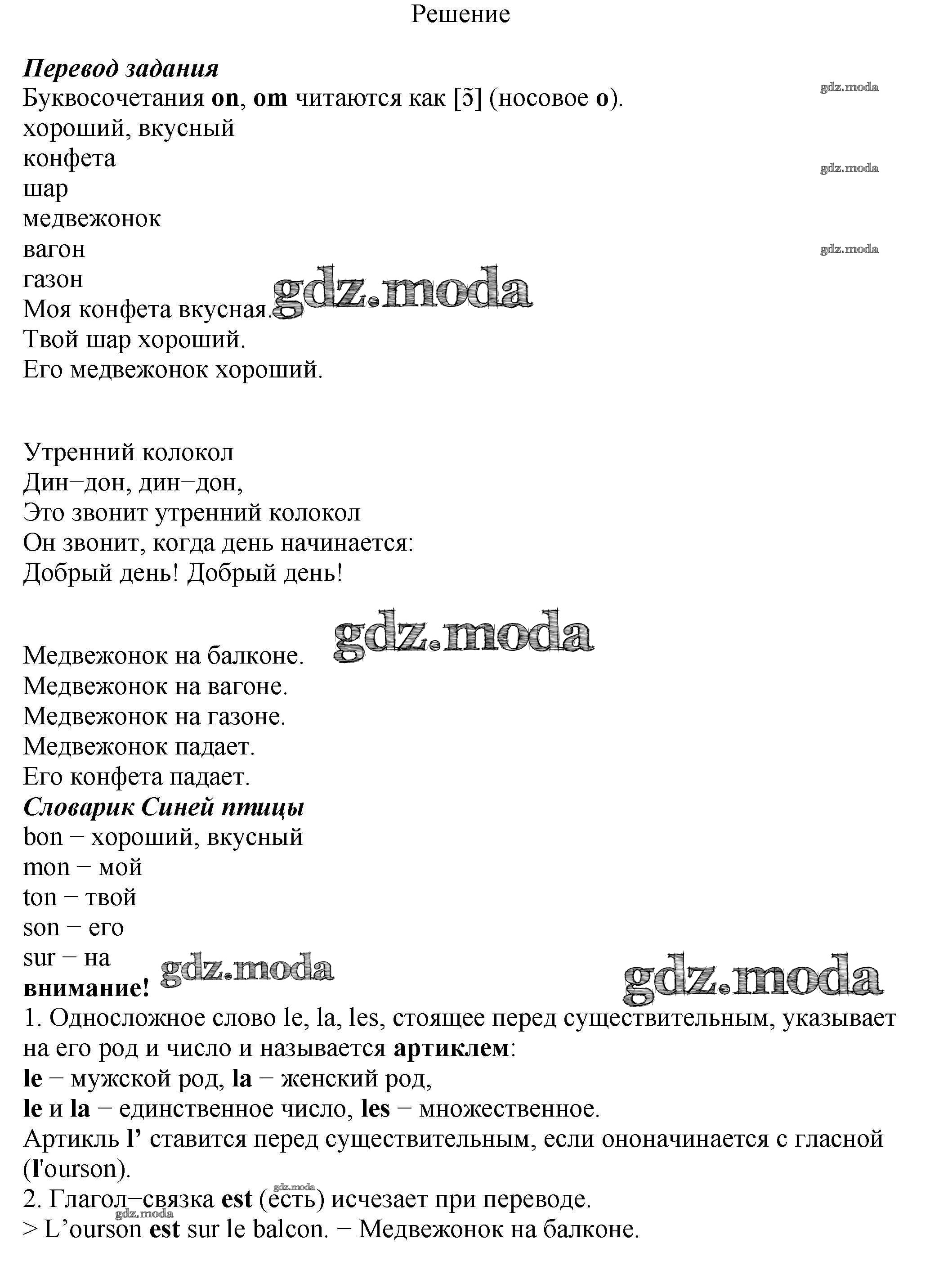 ОТВЕТ на задание № 11 Учебник по Французскому языку 5 класс Береговская Синяя птица