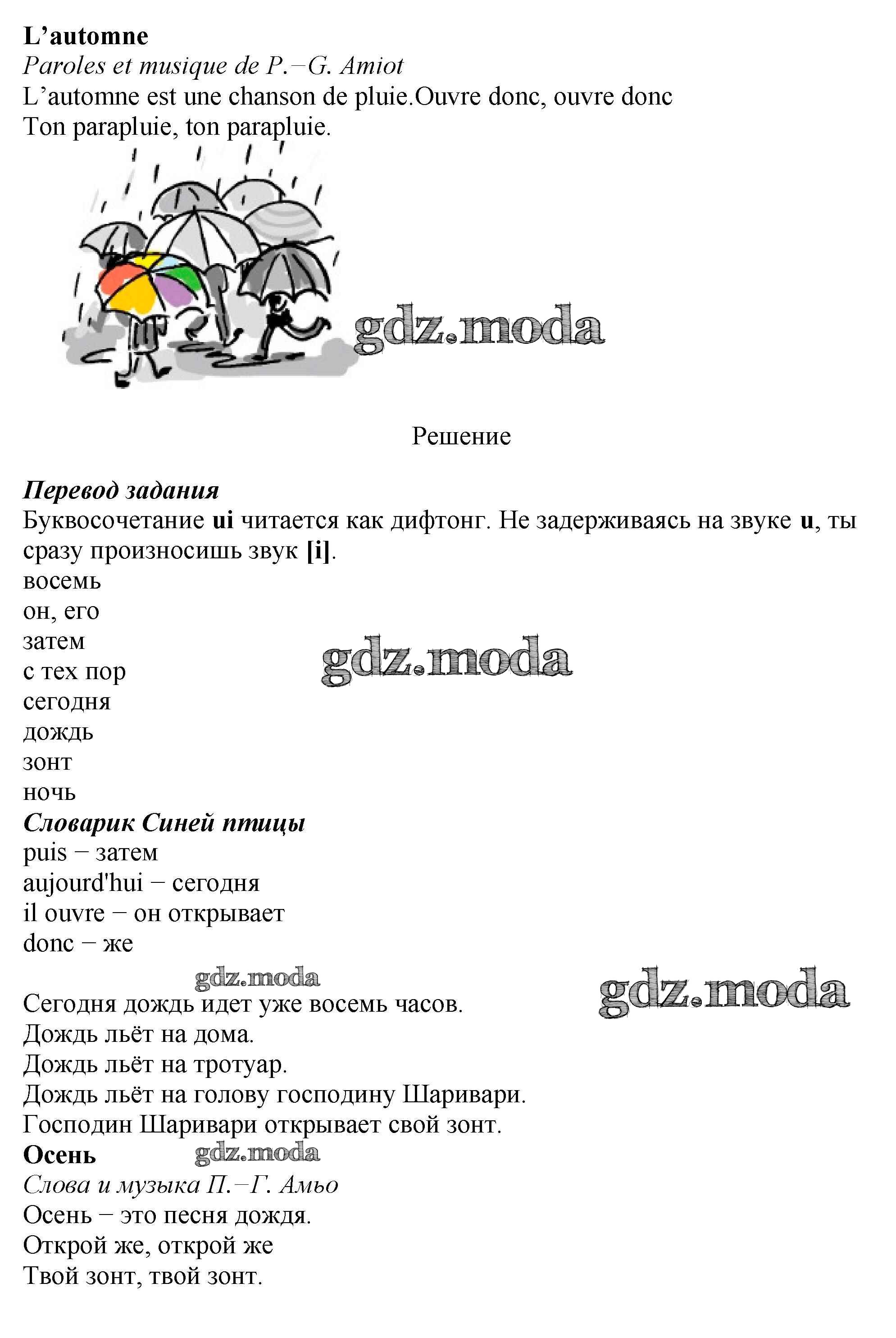 ОТВЕТ на задание № 34 Учебник по Французскому языку 5 класс Береговская Синяя птица