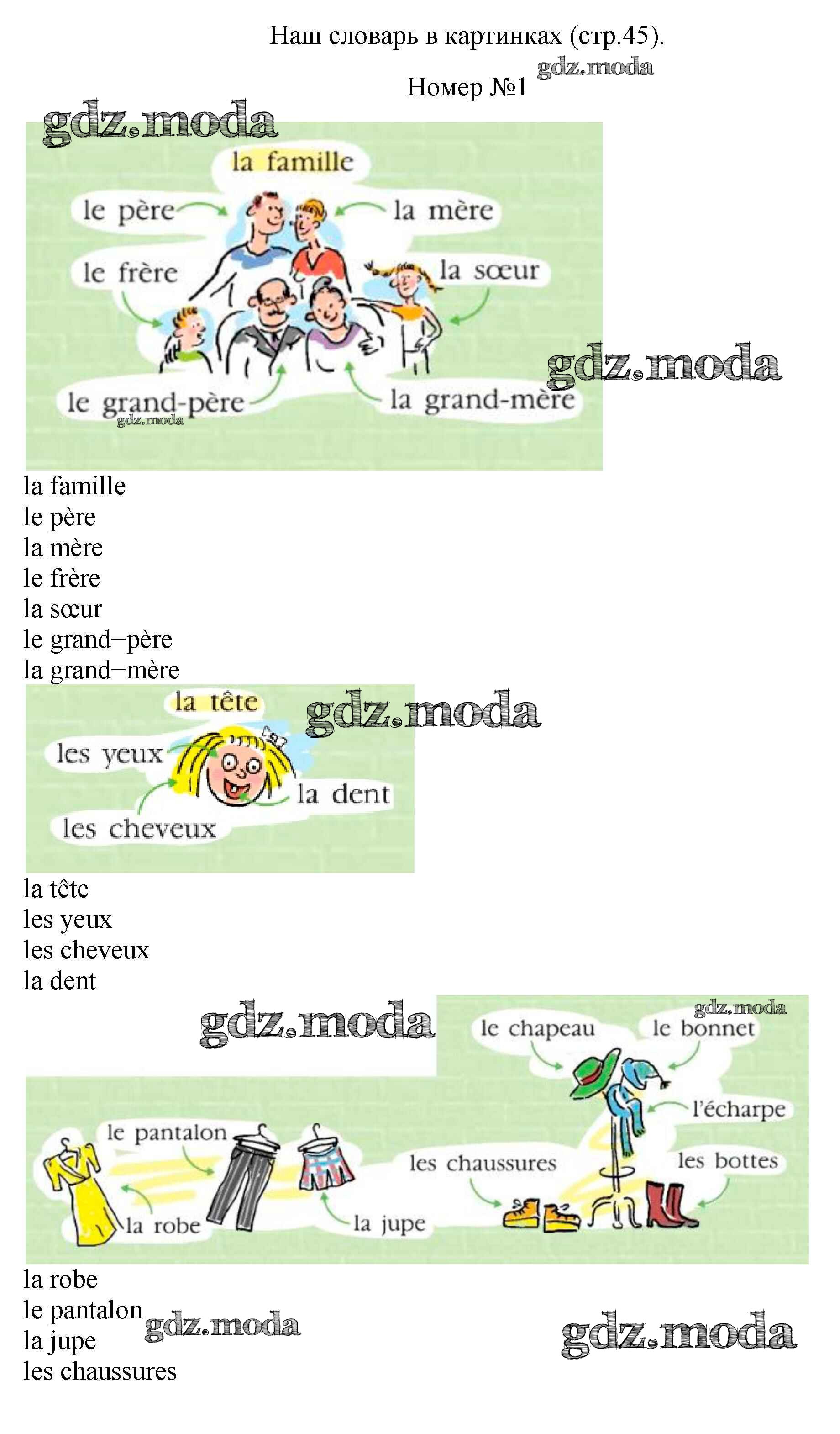 ГДЗ решение к заданию № 45 Французский язык 5 класс Береговская Просвещение 2021 Часть 1 бесплатно на гдз.мода!