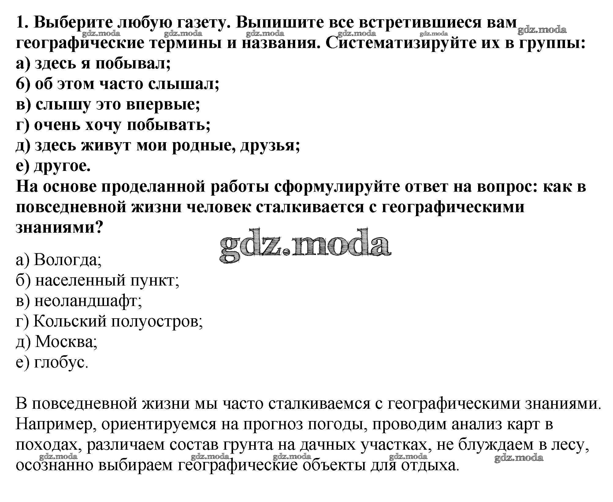 Все ГДЗ по Географии 5 класс Полярная звезда