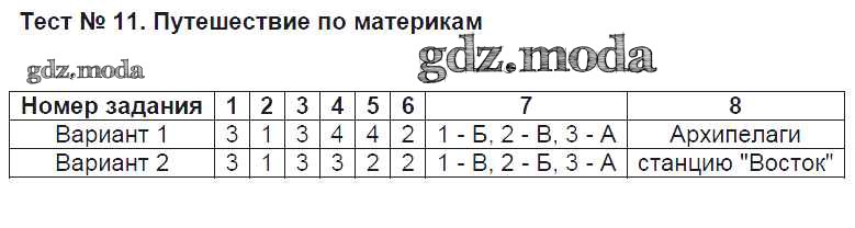ГДЗ решение к заданию № 11 География 5 класс КИМ Жижина ВАКО 2018 ФГОС бесплатно на гдз.мода!