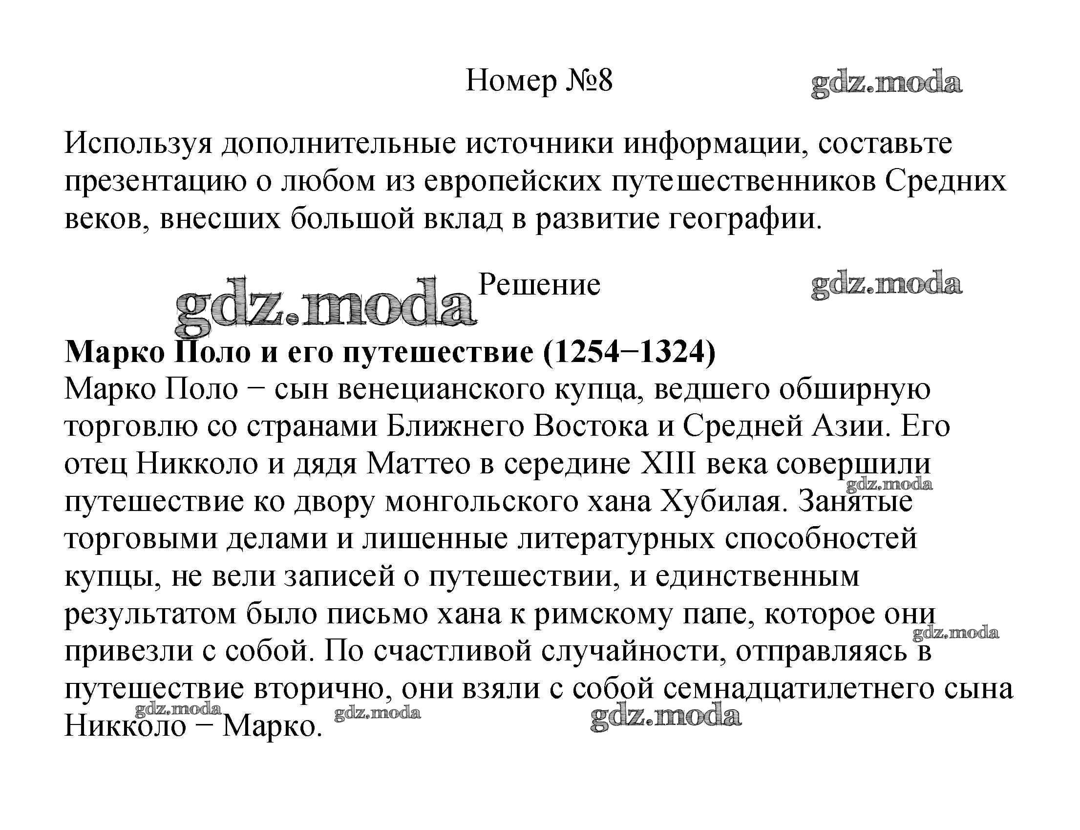 ОТВЕТ на задание № 8 Учебник по Географии 5 класс Летягин