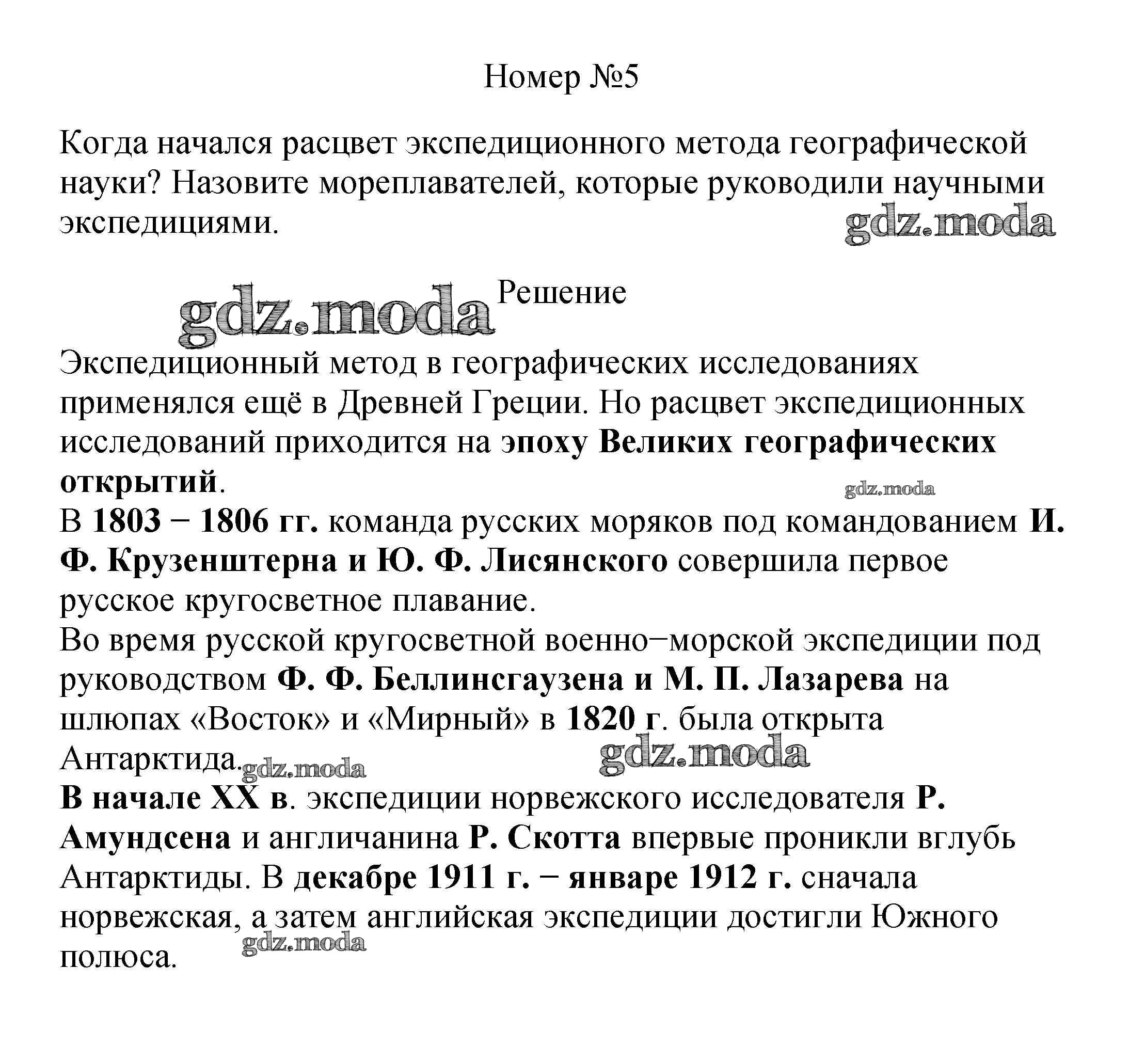 ОТВЕТ на задание № 5 Учебник по Географии 5 класс Летягин