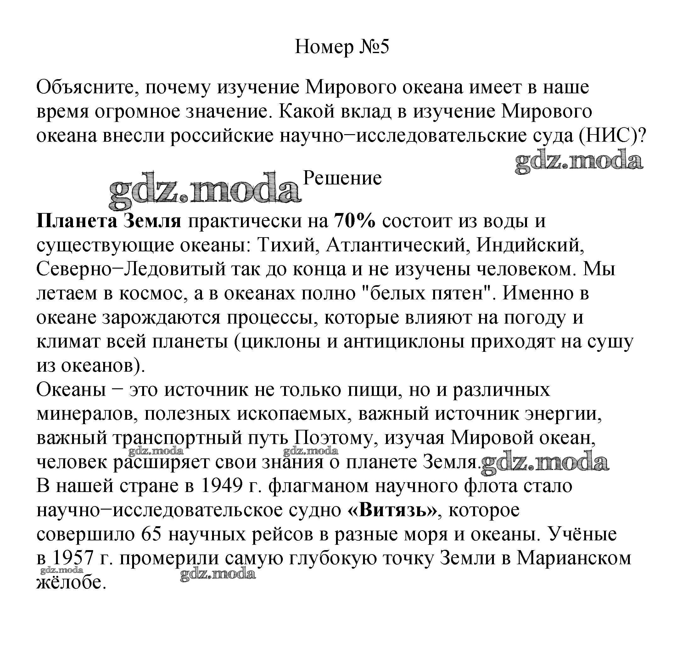 ОТВЕТ на задание № 5 Учебник по Географии 5 класс Летягин