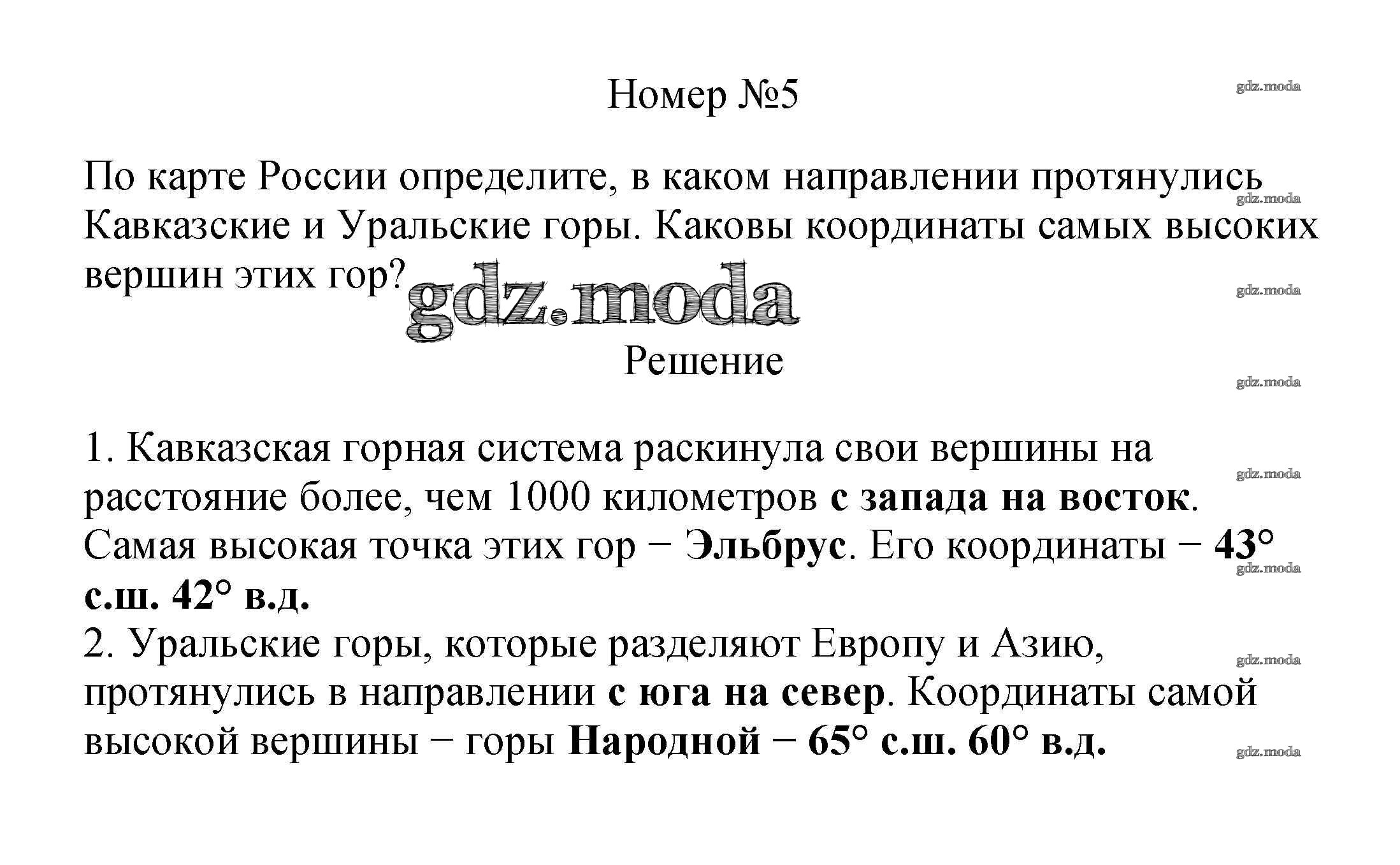 ОТВЕТ на задание № 5 Учебник по Географии 5 класс Летягин