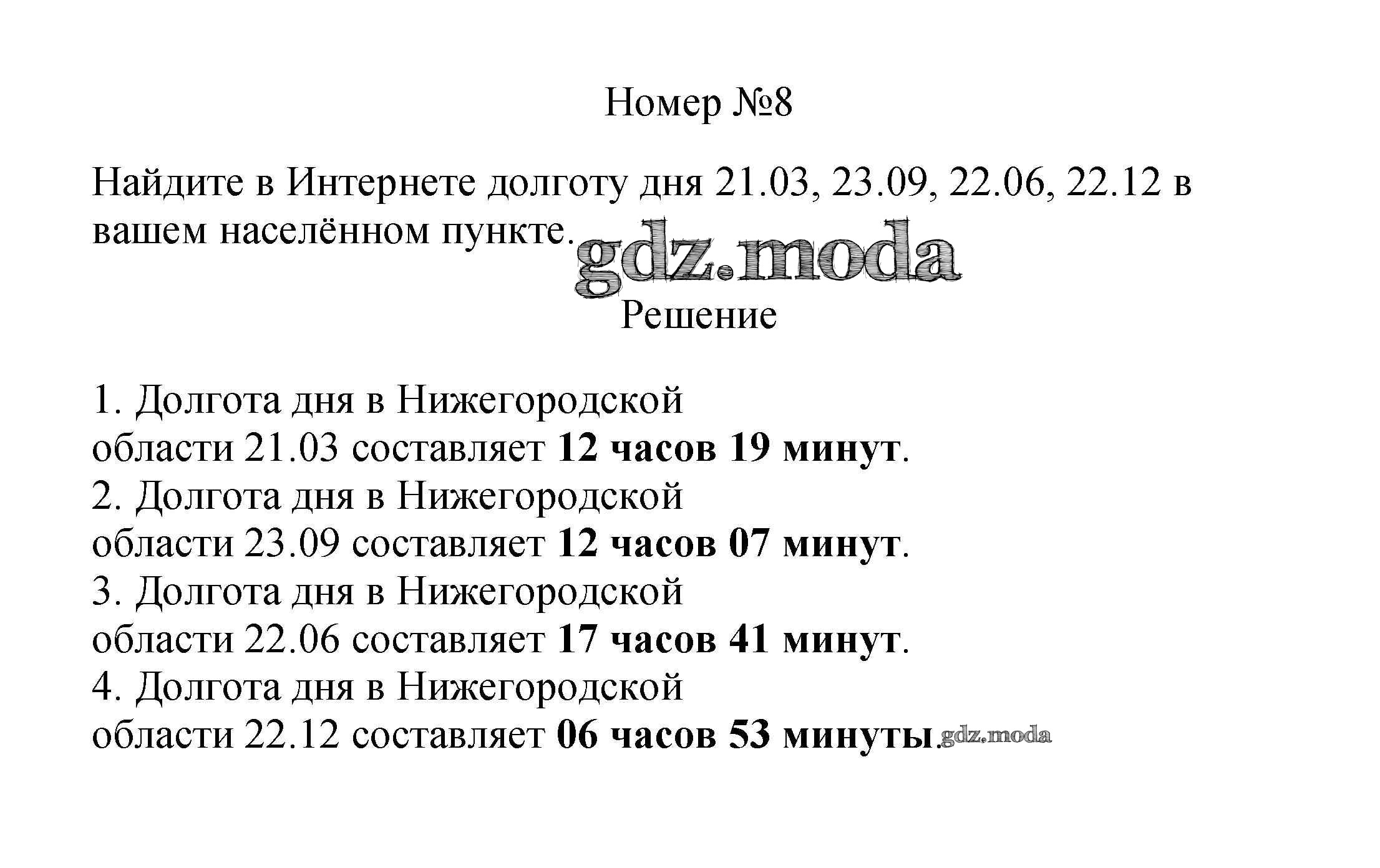 ГДЗ решение к заданию № 8 География 5 класс Летягин А.А. Просвещение 2021 ФГОС бесплатно на гдз.мода!