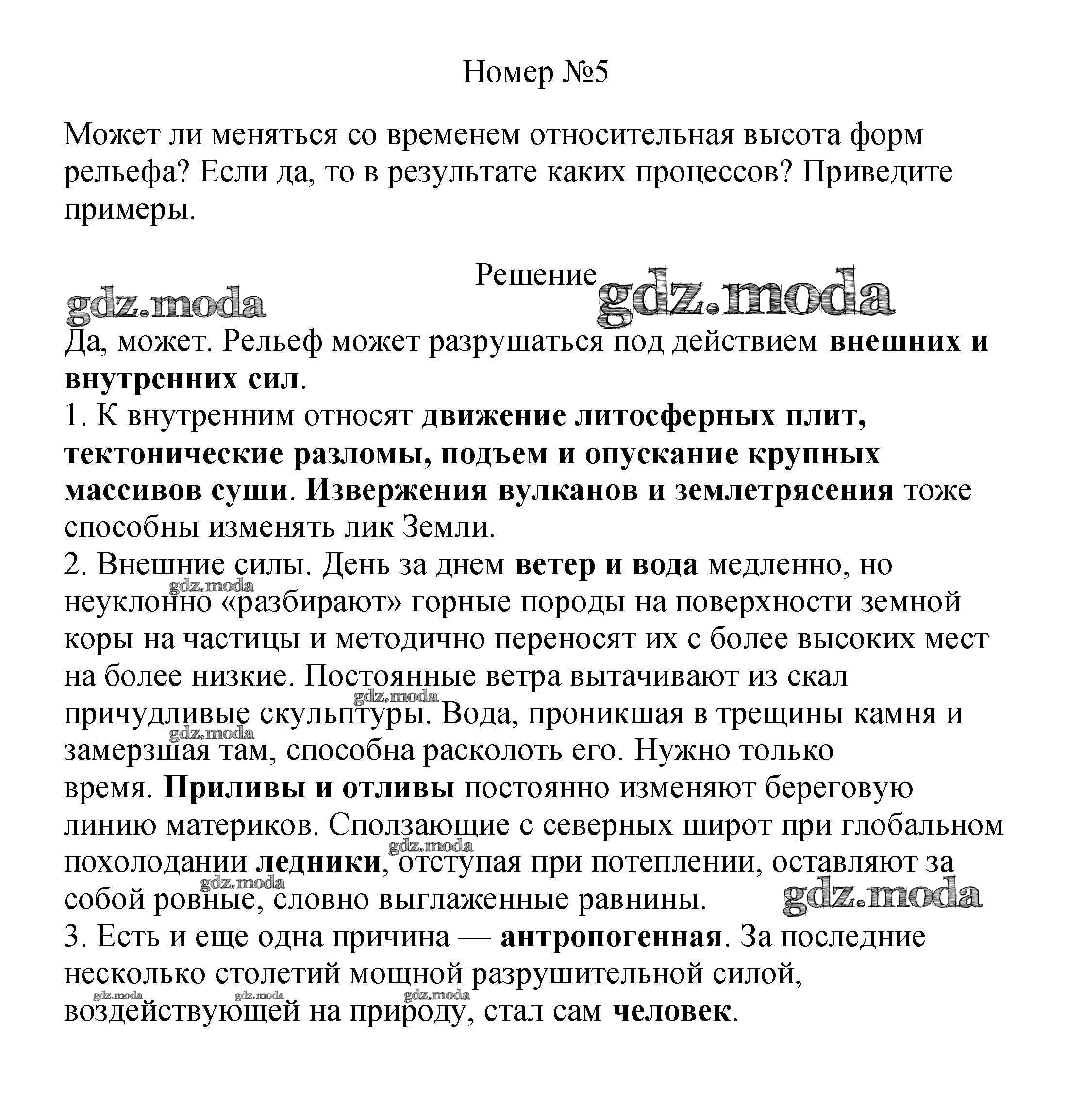 ОТВЕТ на задание № 5 Учебник по Географии 5 класс Летягин