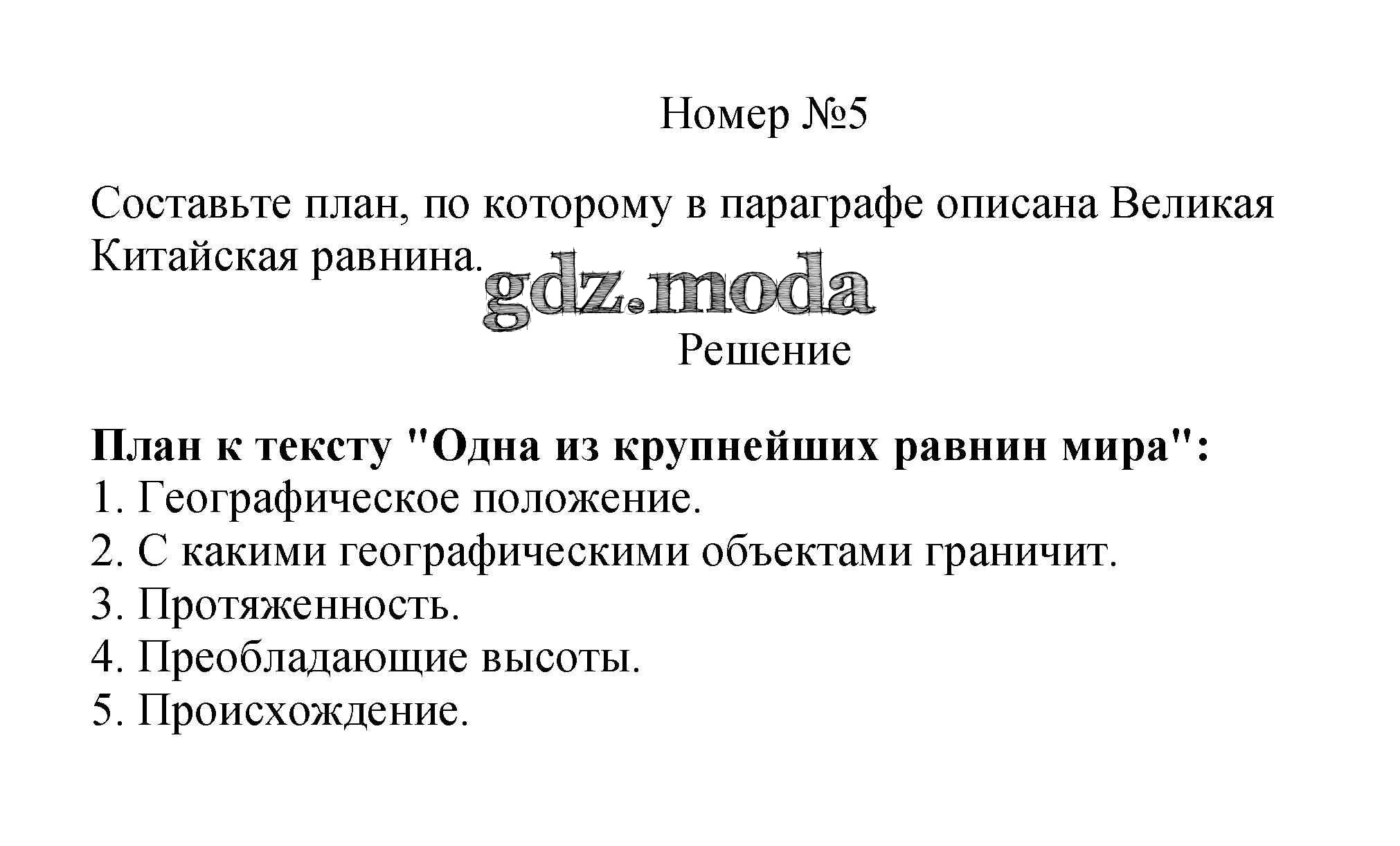 ОТВЕТ на задание № 5 Учебник по Географии 5 класс Летягин