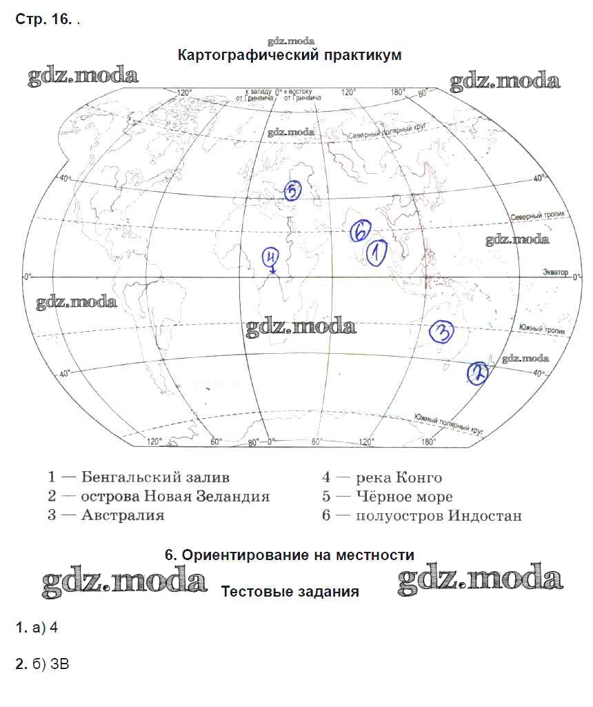 ГДЗ решение к заданию № 16 География 5 класс рабочая тетрадь Домогацких Е.М. Русское слово 2013 ФГОС бесплатно на гдз.мода!