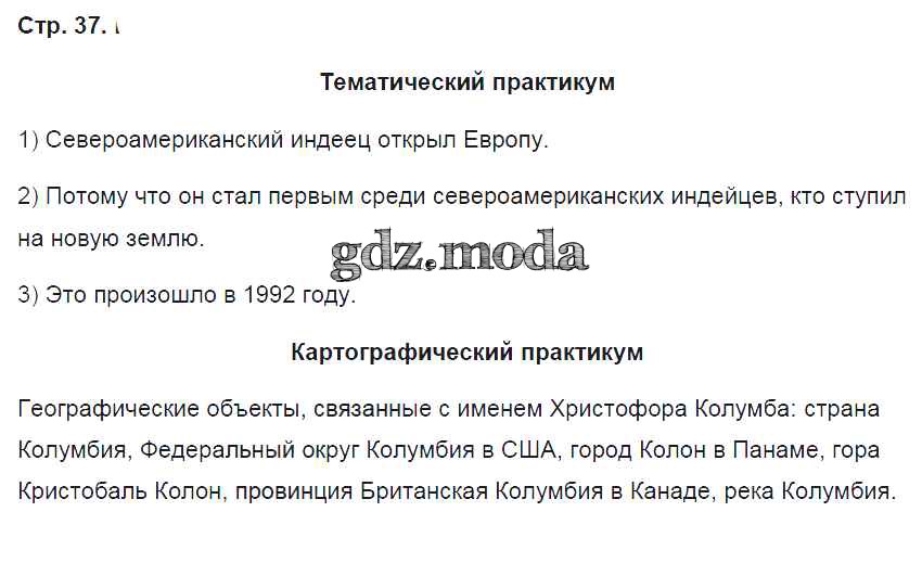 ГДЗ решение к заданию № 37 География 5 класс рабочая тетрадь Домогацких Е.М. Русское слово 2013 ФГОС бесплатно на гдз.мода!