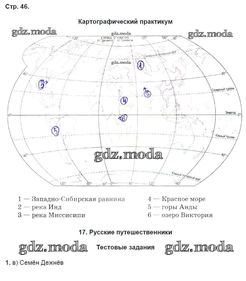 ГДЗ решение к заданию № 46 География 5 класс рабочая тетрадь Домогацких Е.М. Русское слово 2013 ФГОС бесплатно на гдз.мода!