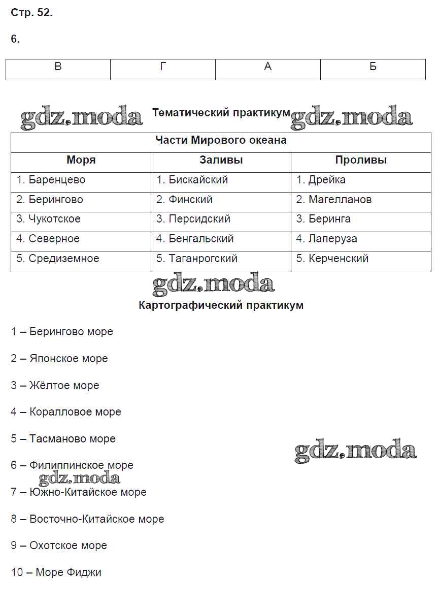 ГДЗ решение к заданию № 52 География 5 класс рабочая тетрадь Домогацких Е.М. Русское слово 2013 ФГОС бесплатно на гдз.мода!