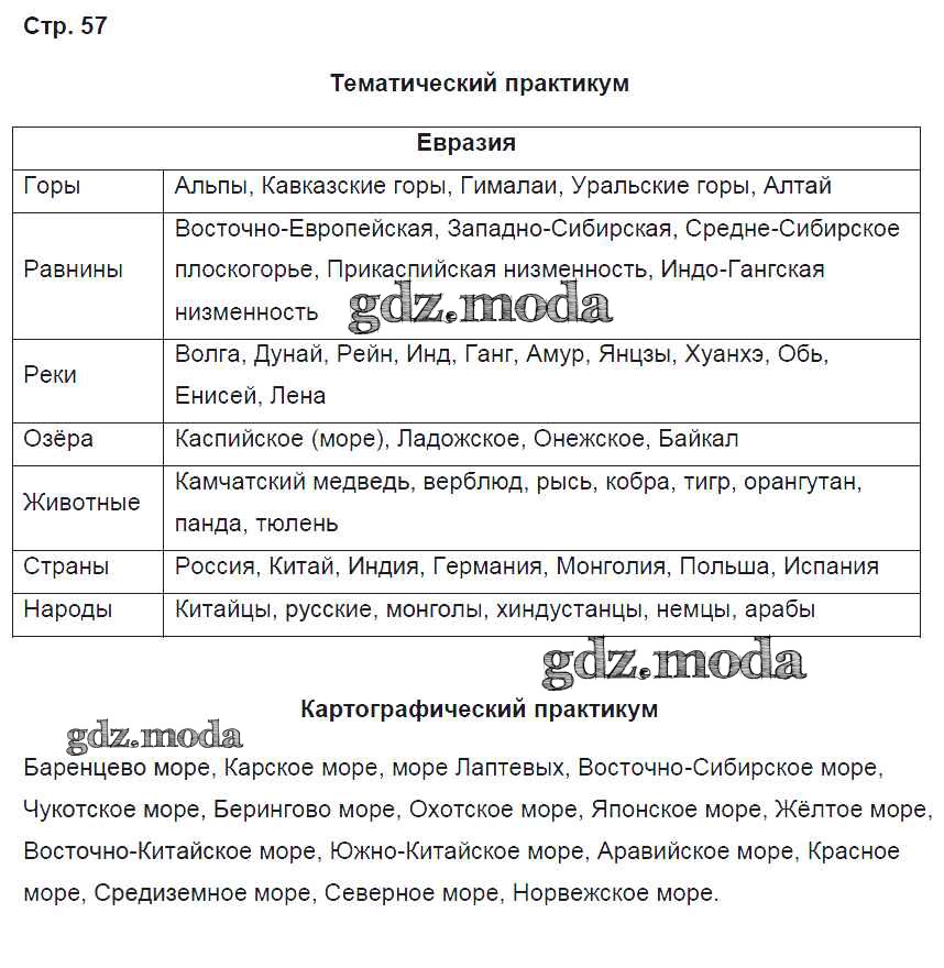 ГДЗ решение к заданию № 57 География 5 класс рабочая тетрадь Домогацких Е.М. Русское слово 2013 ФГОС бесплатно на гдз.мода!