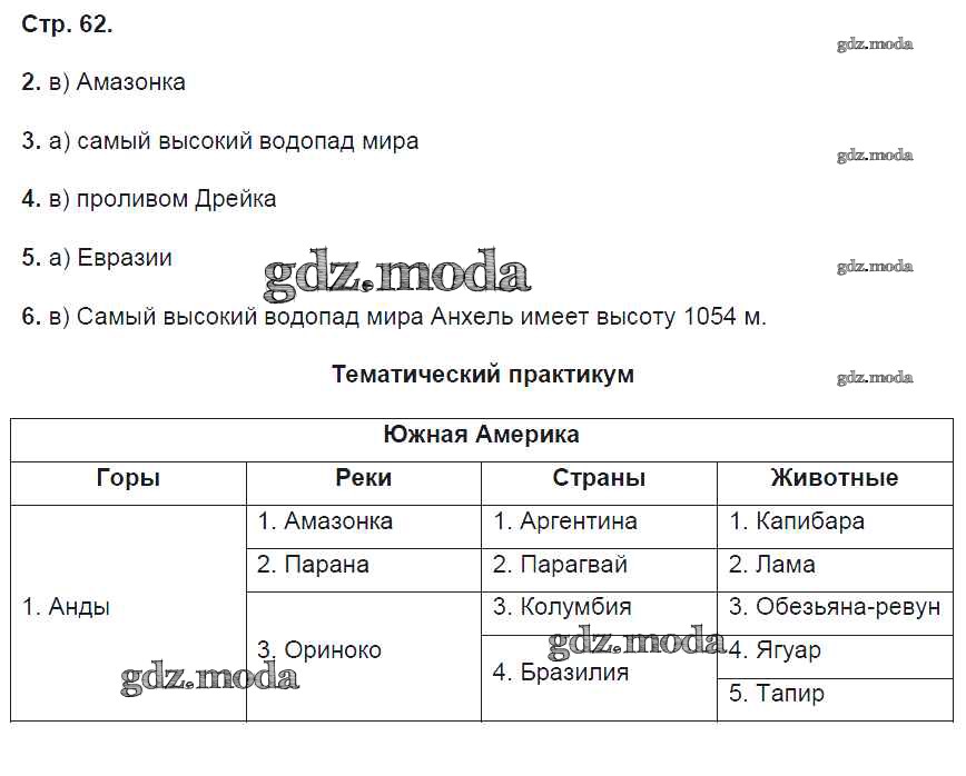 ГДЗ решение к заданию № 62 География 5 класс рабочая тетрадь Домогацких Е.М. Русское слово 2013 ФГОС бесплатно на гдз.мода!