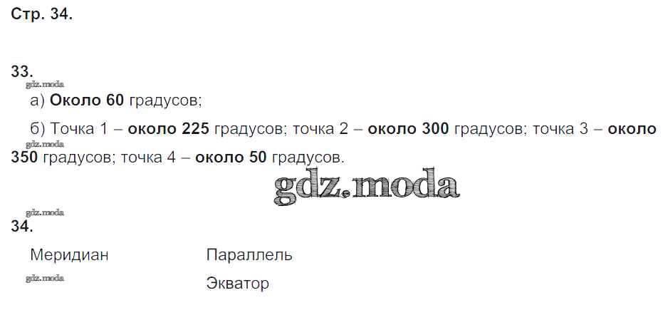 ГДЗ решение к заданию № 34 География 5 класс рабочая тетрадь Дронов В.П. Дрофа 2016 ФГОС бесплатно на гдз.мода!