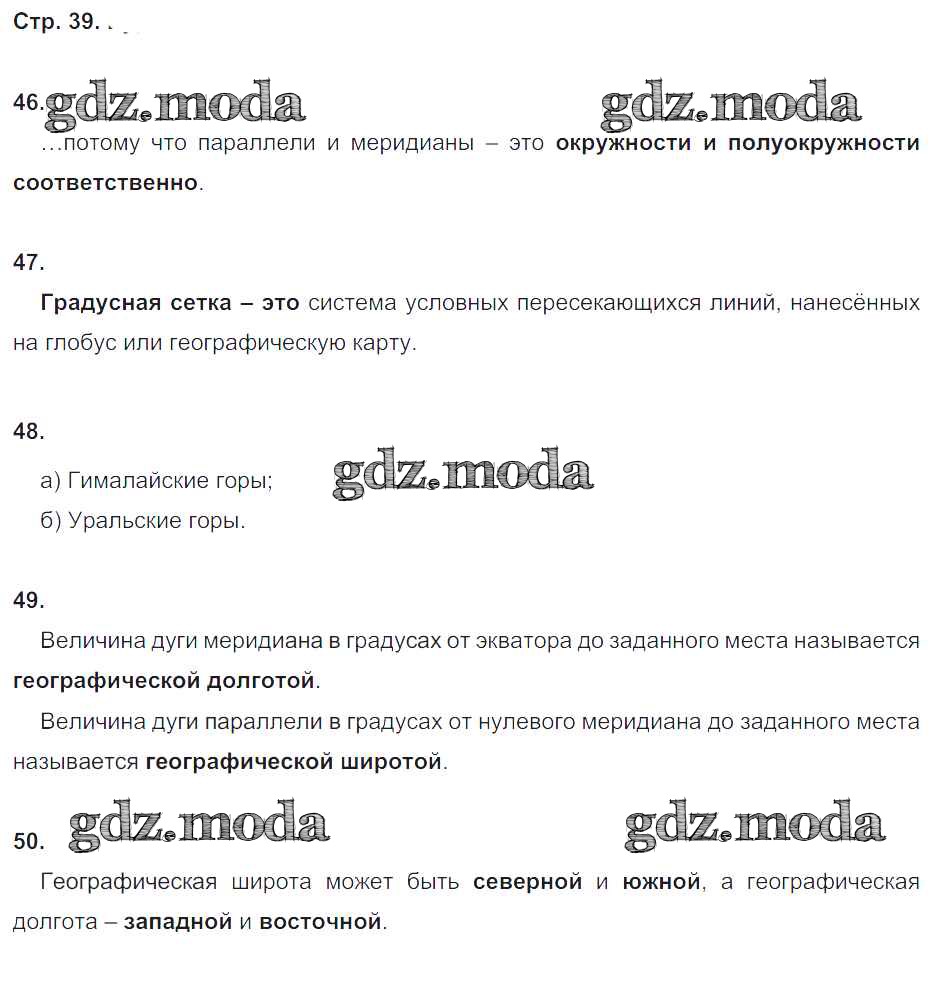 ГДЗ решение к заданию № 39 География 5 класс рабочая тетрадь Дронов В.П. Дрофа 2016 ФГОС бесплатно на гдз.мода!