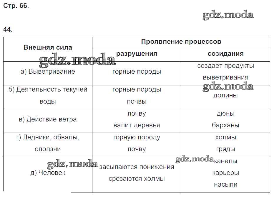 ГДЗ решение к заданию № 66 География 5 класс рабочая тетрадь Дронов В.П. Дрофа 2016 ФГОС бесплатно на гдз.мода!