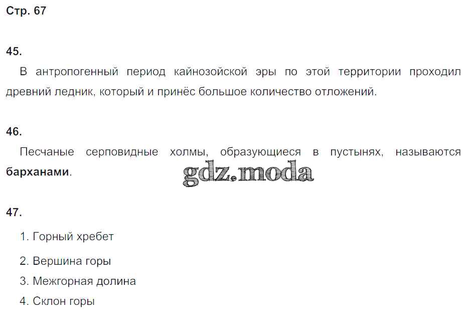 ГДЗ решение к заданию № 67 География 5 класс рабочая тетрадь Дронов В.П. Дрофа 2016 ФГОС бесплатно на гдз.мода!