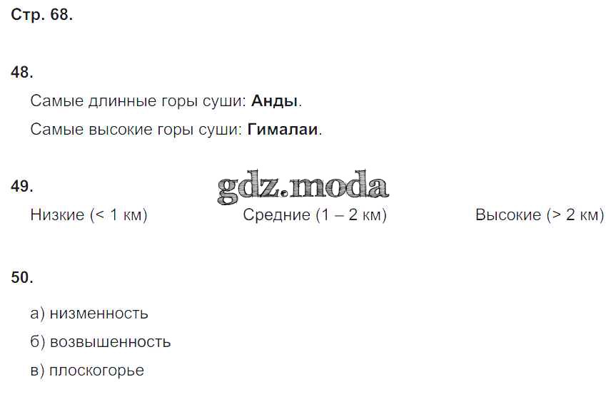 ОТВЕТ на задание № 68 Рабочая тетрадь по Географии 5 класс Дронов УМК
