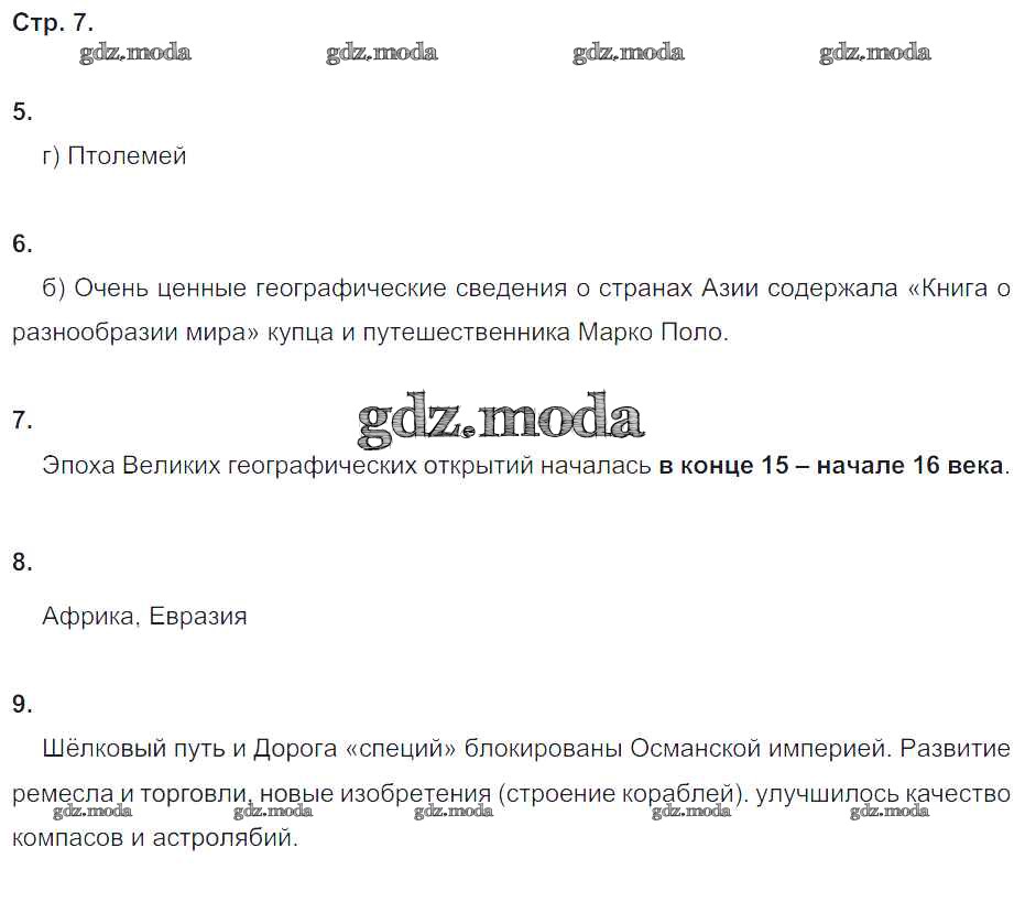 ГДЗ решение к заданию № 7 География 5 класс рабочая тетрадь Дронов В.П. Дрофа 2016 ФГОС бесплатно на гдз.мода!