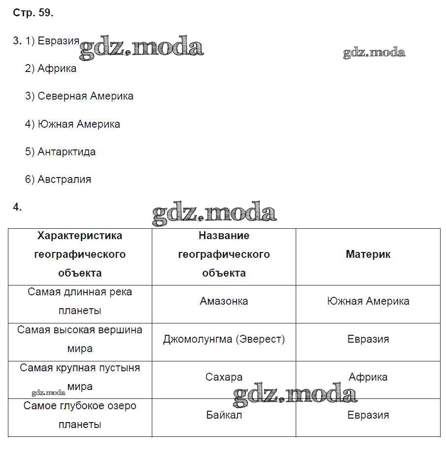 ГДЗ решение к заданию № 59 География 5 класс рабочая тетрадь Начальный курс Сонин Н.И. Дрофа 2015 ФГОС бесплатно на гдз.мода!