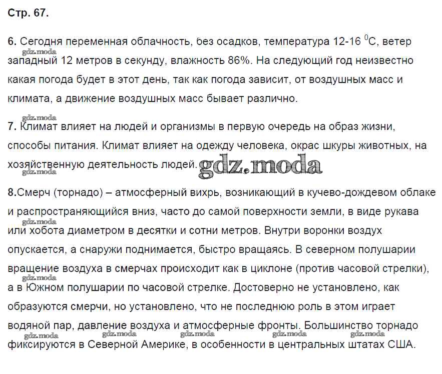 ГДЗ решение к заданию № 67 География 5 класс рабочая тетрадь Начальный курс Сонин Н.И. Дрофа 2015 ФГОС бесплатно на гдз.мода!