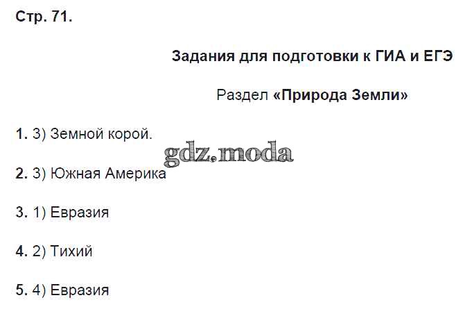 ГДЗ решение к заданию № 71 География 5 класс рабочая тетрадь Начальный курс Сонин Н.И. Дрофа 2015 ФГОС бесплатно на гдз.мода!