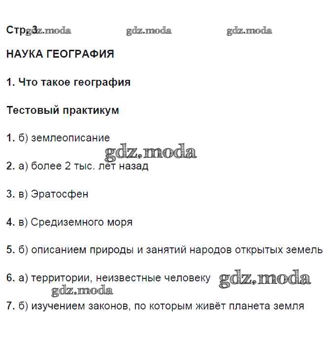 ОТВЕТ на задание № 3 Тетрадь-практикум по Географии 5 класс Молодцов Инновационная школа
