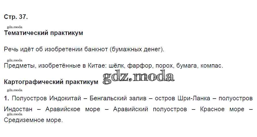 ГДЗ решение к заданию № 37 География 5 класс тетрадь-практикум Молодцов Д.В. ( к уч. Домогацких Е.М.) Русское слово 2015 ФГОС бесплатно на гдз.мода!
