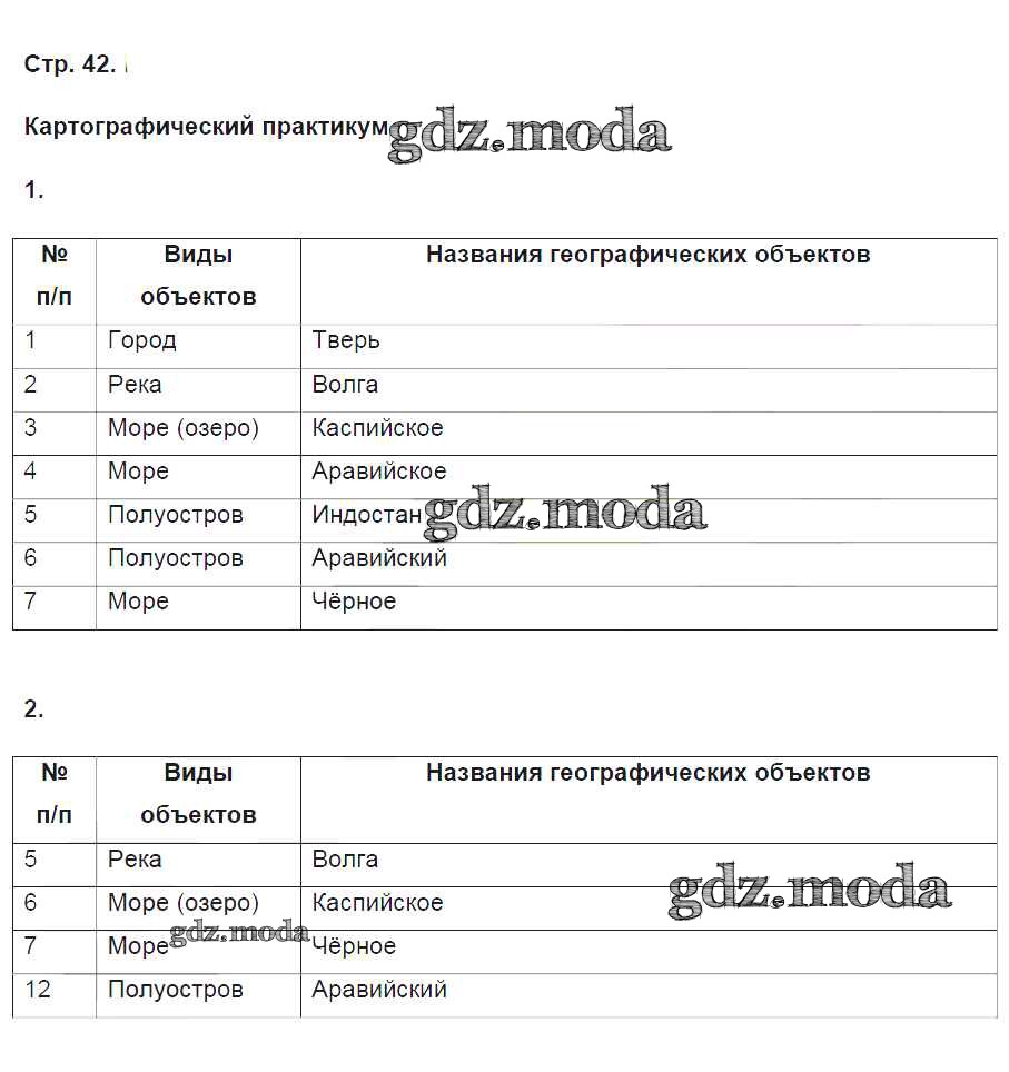 ГДЗ решение к заданию № 42 География 5 класс тетрадь-практикум Молодцов Д.В. ( к уч. Домогацких Е.М.) Русское слово 2015 ФГОС бесплатно на гдз.мода!