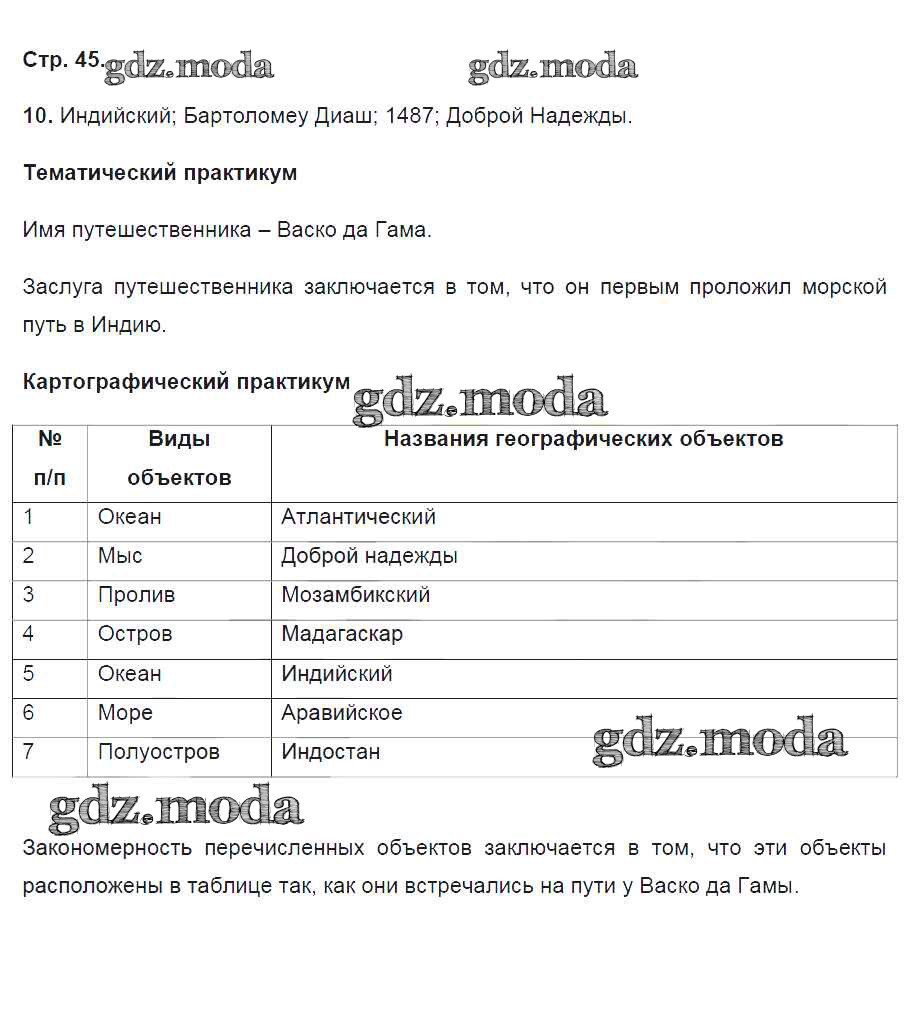 ГДЗ решение к заданию № 45 География 5 класс тетрадь-практикум Молодцов Д.В. ( к уч. Домогацких Е.М.) Русское слово 2015 ФГОС бесплатно на гдз.мода!