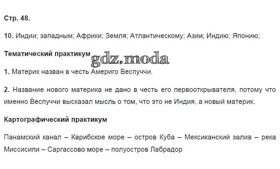 ГДЗ решение к заданию № 48 География 5 класс тетрадь-практикум Молодцов Д.В. ( к уч. Домогацких Е.М.) Русское слово 2015 ФГОС бесплатно на гдз.мода!