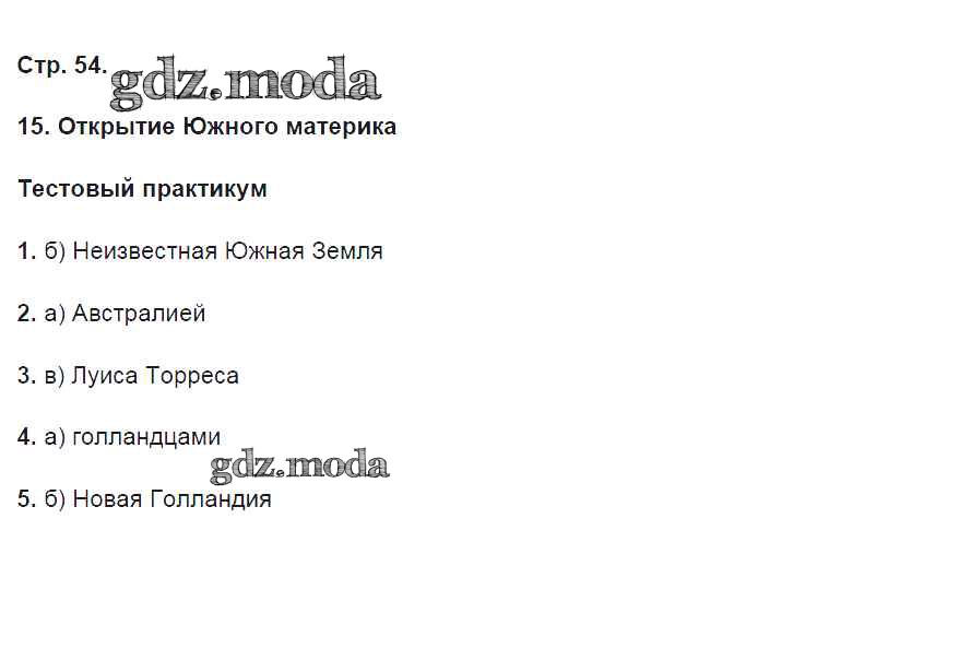 ОТВЕТ на задание № 54 Тетрадь-практикум по Географии 5 класс Молодцов Инновационная школа