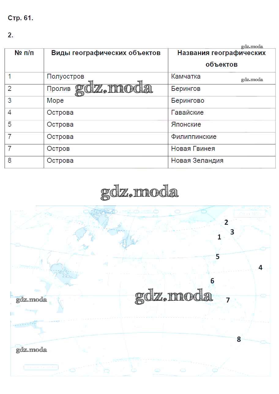 ГДЗ решение к заданию № 61 География 5 класс тетрадь-практикум Молодцов Д.В. ( к уч. Домогацких Е.М.) Русское слово 2015 ФГОС бесплатно на гдз.мода!