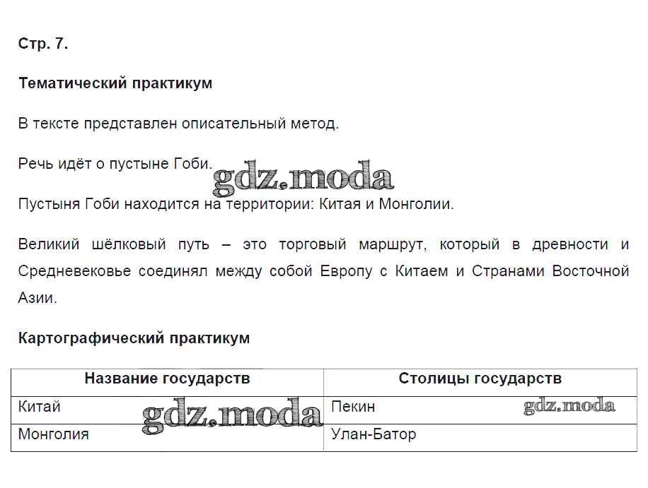 ГДЗ решение к заданию № 7 География 5 класс тетрадь-практикум Молодцов Д.В. ( к уч. Домогацких Е.М.) Русское слово 2015 ФГОС бесплатно на гдз.мода!