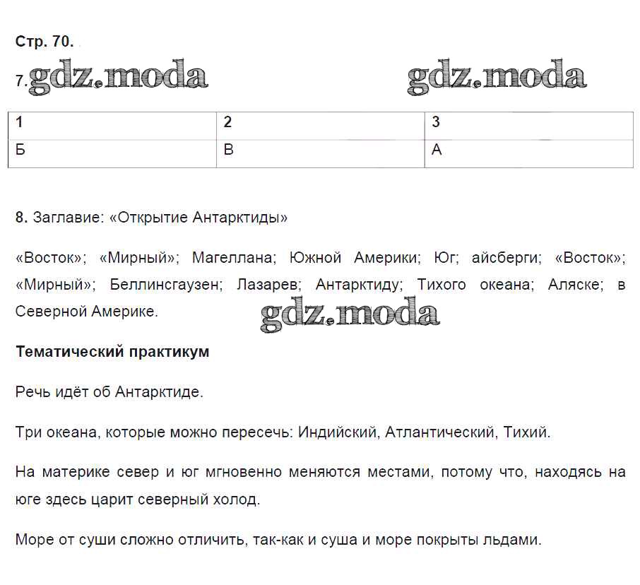 ОТВЕТ на задание № 70 Тетрадь-практикум по Географии 5 класс Молодцов Инновационная школа