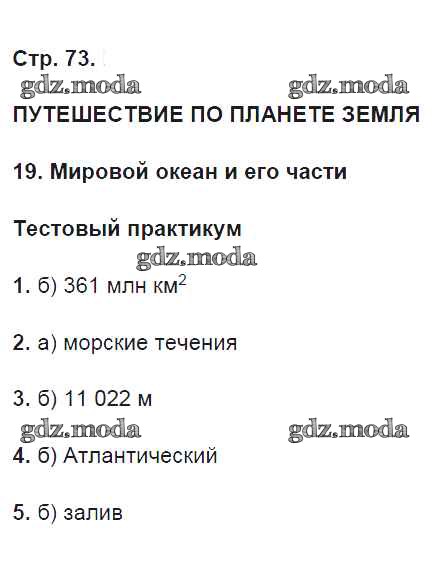 ОТВЕТ на задание № 73 Тетрадь-практикум по Географии 5 класс Молодцов Инновационная школа