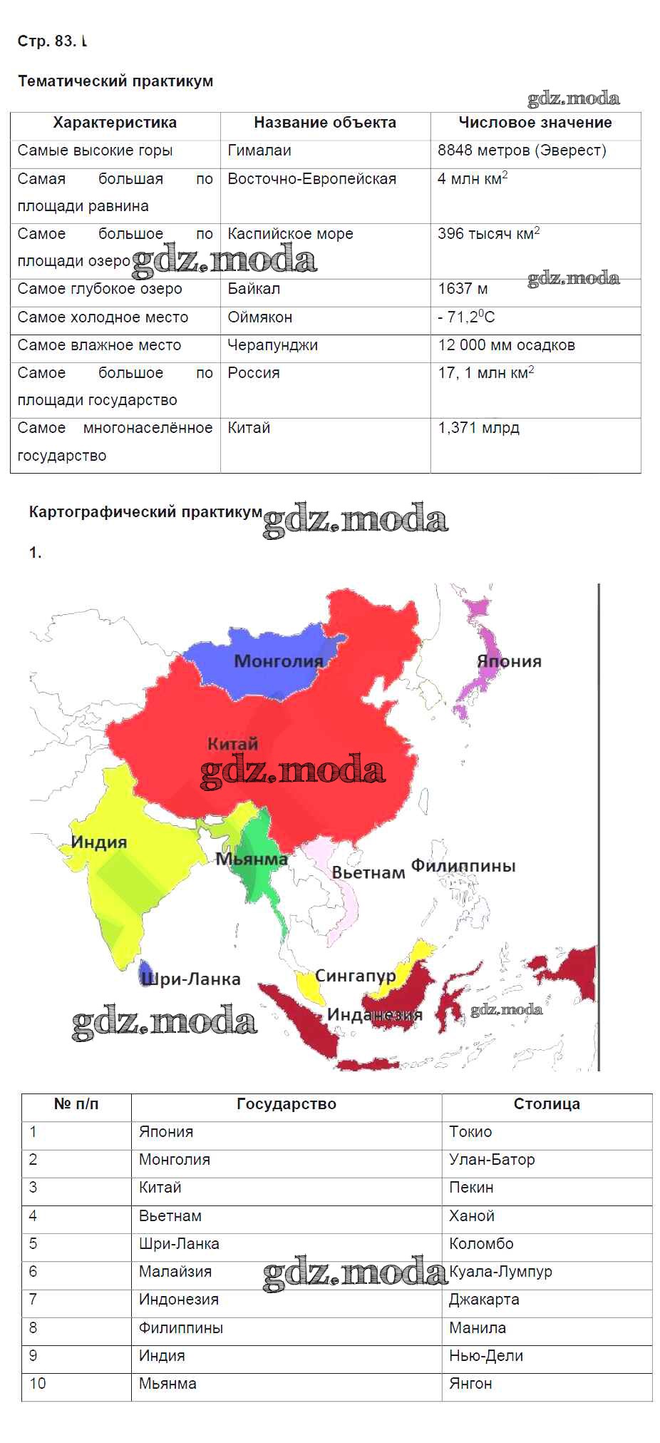 ГДЗ решение к заданию № 83 География 5 класс тетрадь-практикум Молодцов Д.В. ( к уч. Домогацких Е.М.) Русское слово 2015 ФГОС бесплатно на гдз.мода!