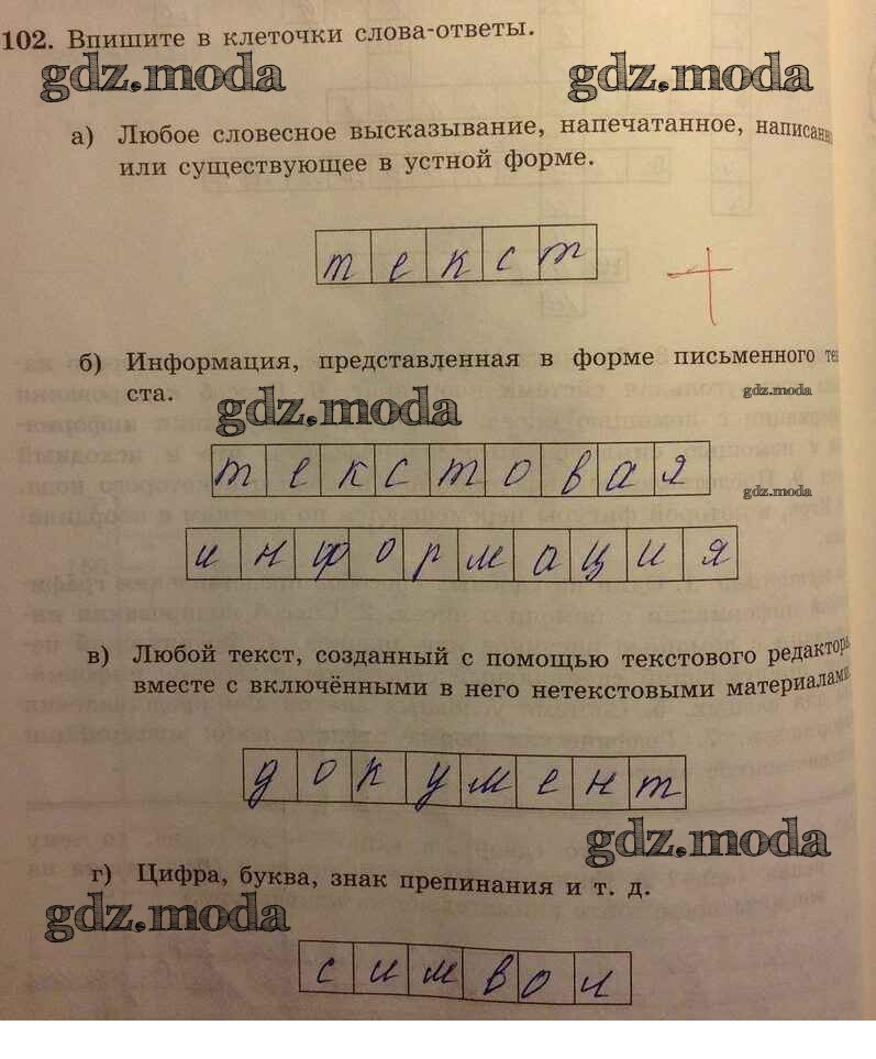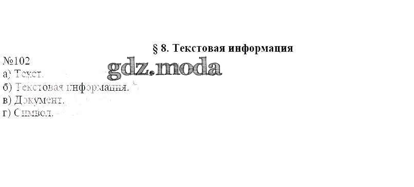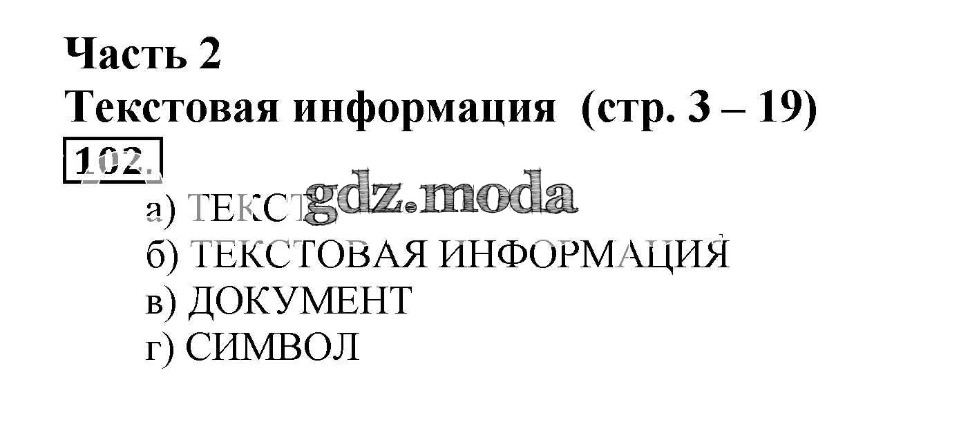 ОТВЕТ на задание № 102 Рабочая тетрадь по Информатике 5 класс Босова