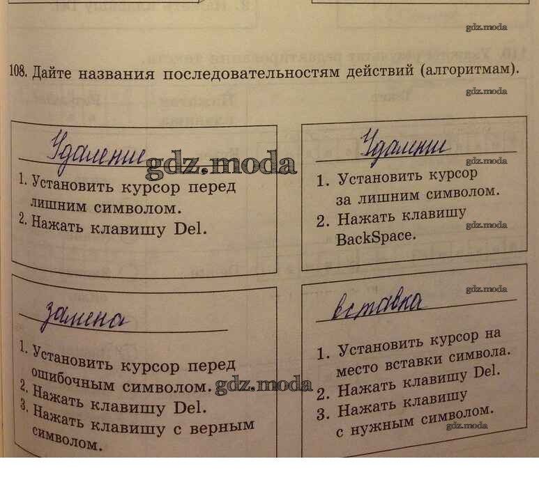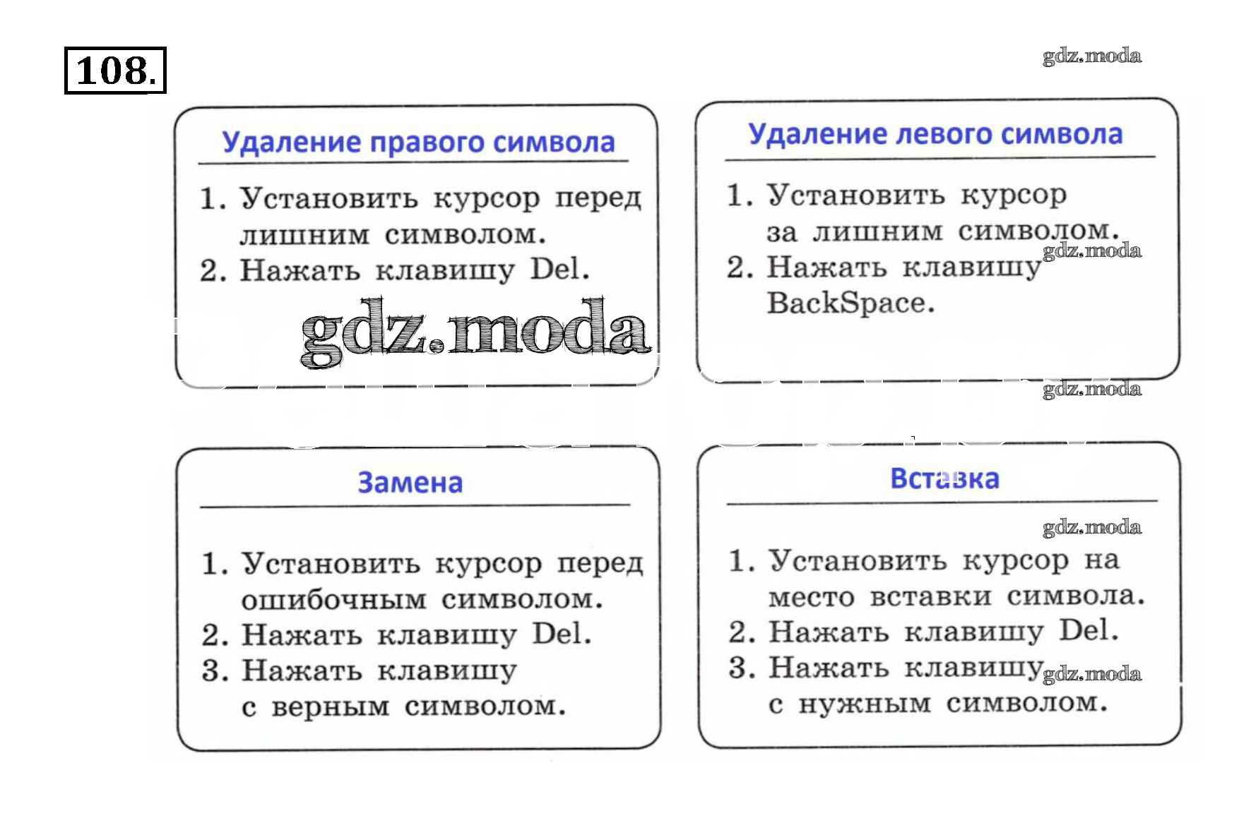 ОТВЕТ на задание № 108 Рабочая тетрадь по Информатике 5 класс Босова