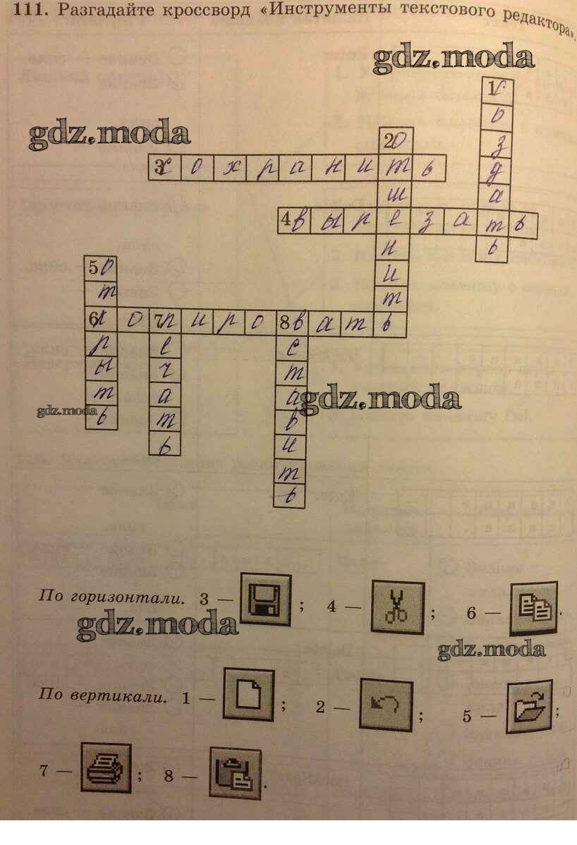 ОТВЕТ на задание № 111 Рабочая тетрадь по Информатике 5 класс Босова