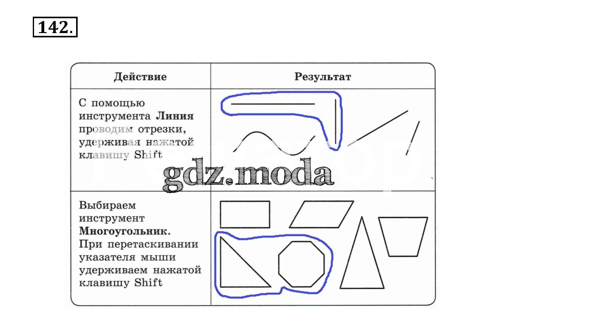 ГДЗ решение к заданию № 142 Информатика 5 класс рабочая тетрадь Босова Бином 2016 Часть 1, Часть 2 ФГОС бесплатно на гдз.мода!