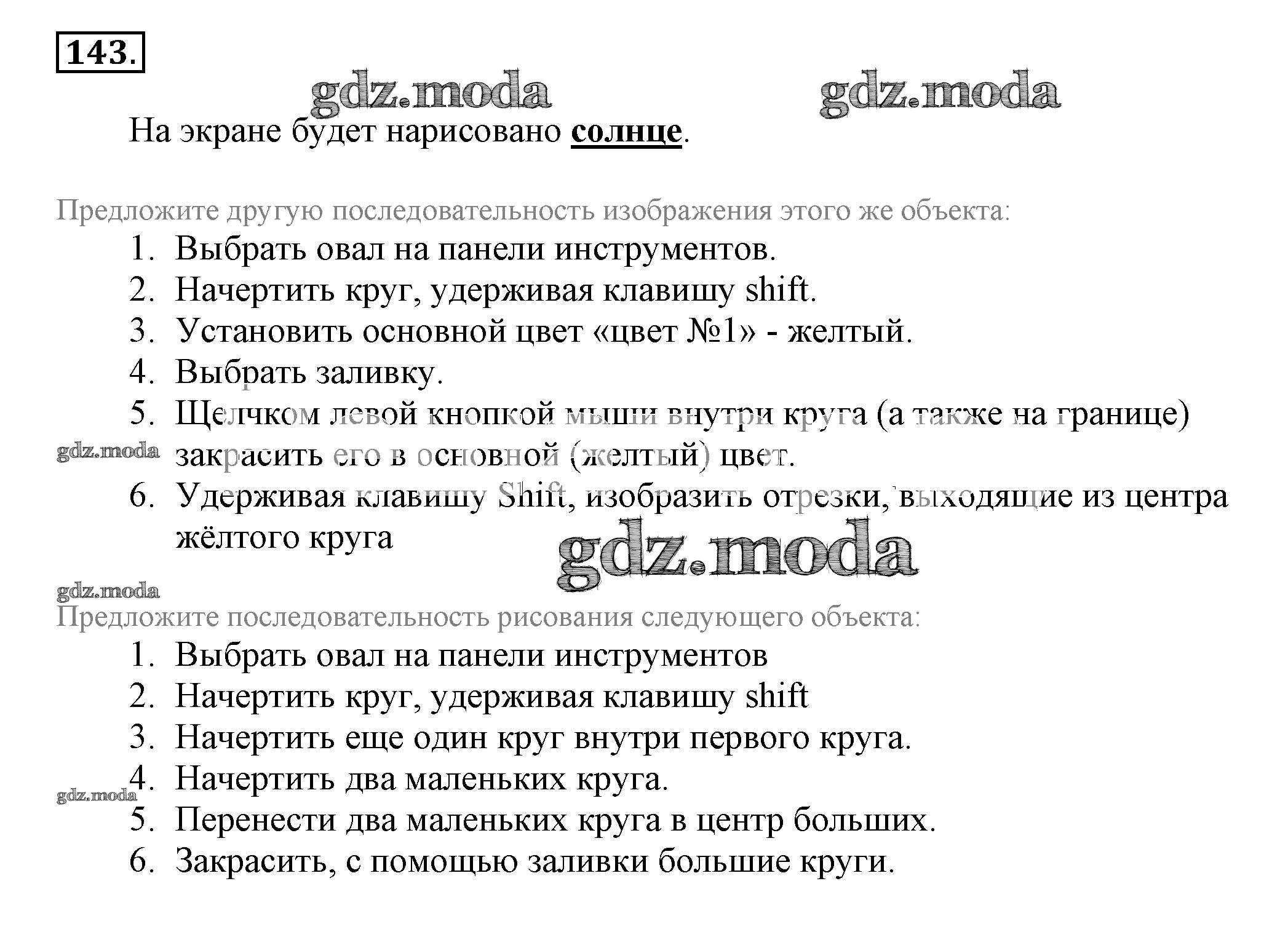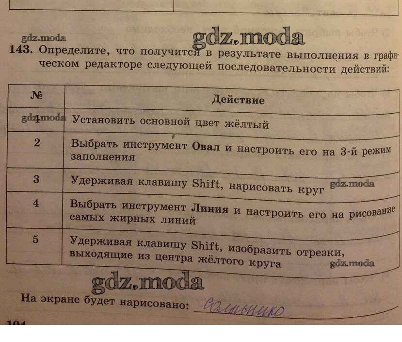 ГДЗ решение к заданию № 143 Информатика 5 класс рабочая тетрадь Босова Бином 2016 Часть 1, Часть 2 ФГОС бесплатно на гдз.мода!