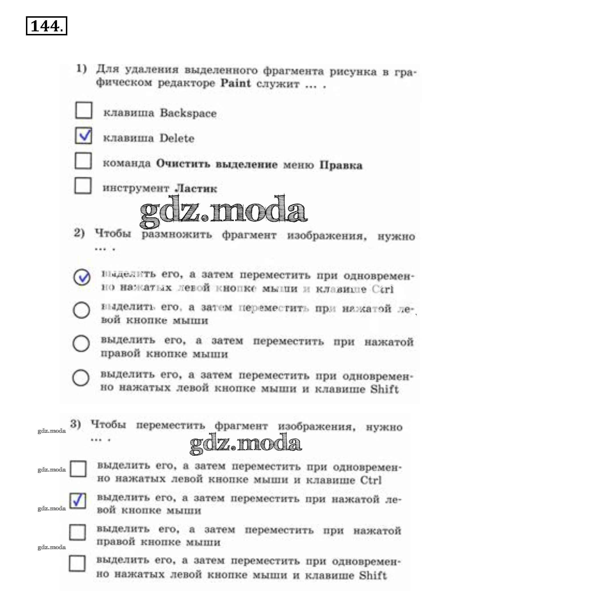 ГДЗ решение к заданию № 144 Информатика 5 класс рабочая тетрадь Босова Бином 2016 Часть 1, Часть 2 ФГОС бесплатно на гдз.мода!