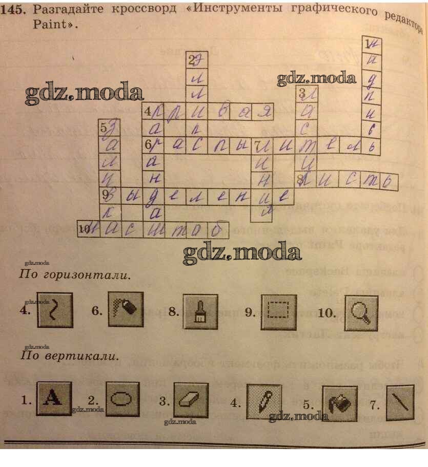 ГДЗ решение к заданию № 145 Информатика 5 класс рабочая тетрадь Босова Бином 2016 Часть 1, Часть 2 ФГОС бесплатно на гдз.мода!