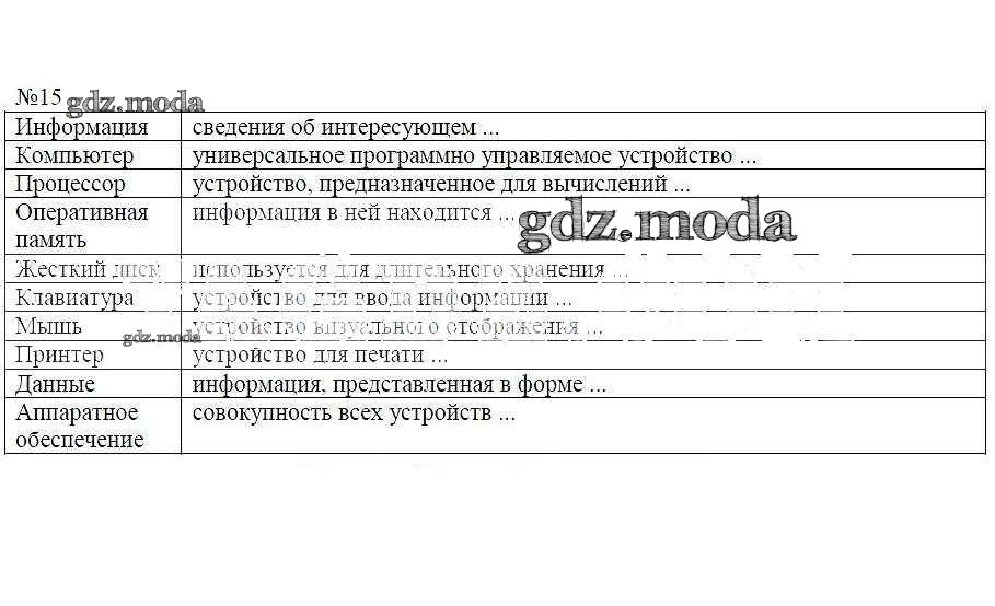 ОТВЕТ на задание № 15 Рабочая тетрадь по Информатике 5 класс Босова