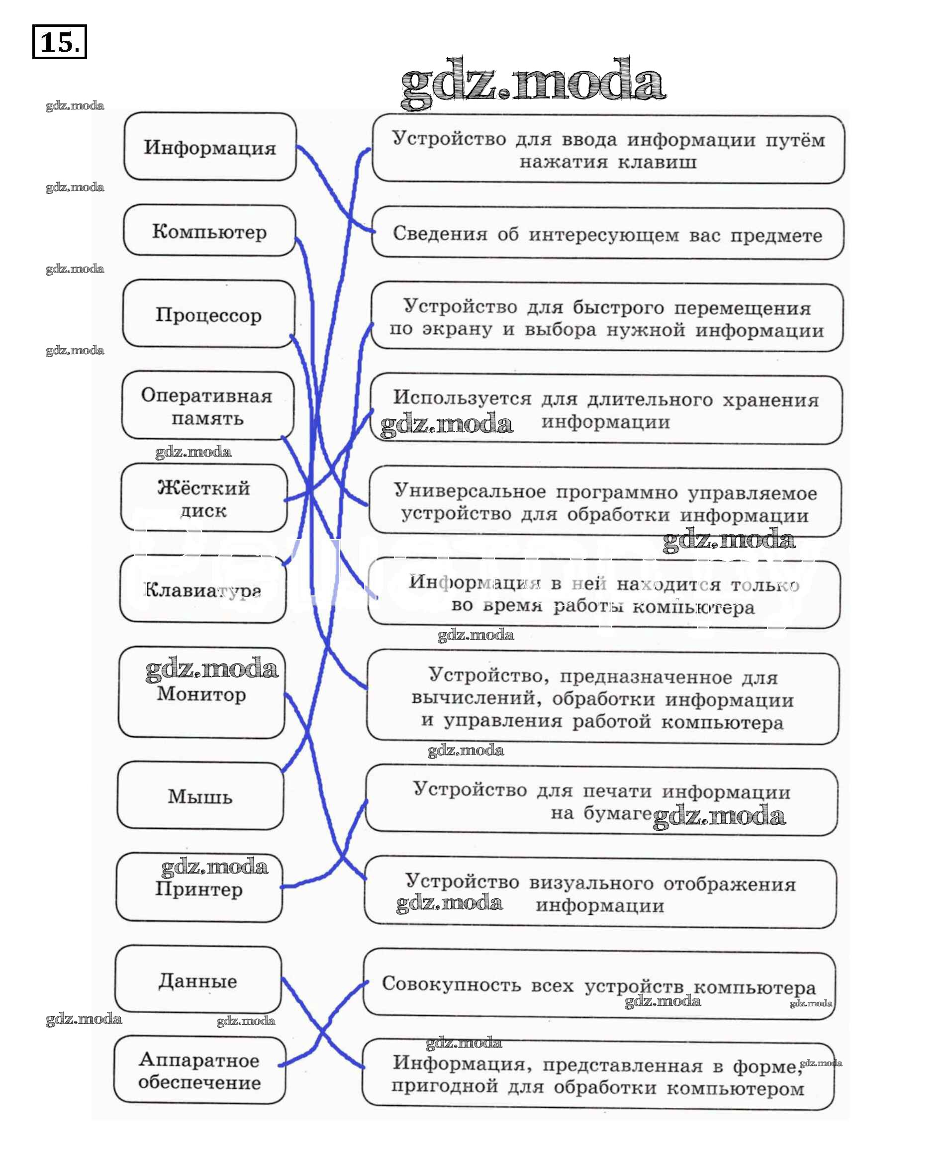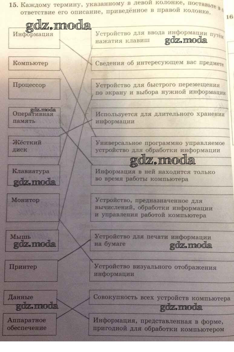 ГДЗ решение к заданию № 15 Информатика 5 класс рабочая тетрадь Босова Бином 2016 Часть 1, Часть 2 ФГОС бесплатно на гдз.мода!