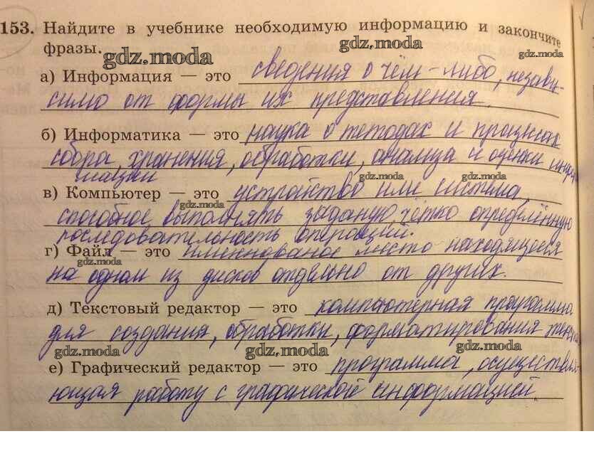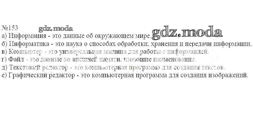 ОТВЕТ на задание № 153 Рабочая тетрадь по Информатике 5 класс Босова