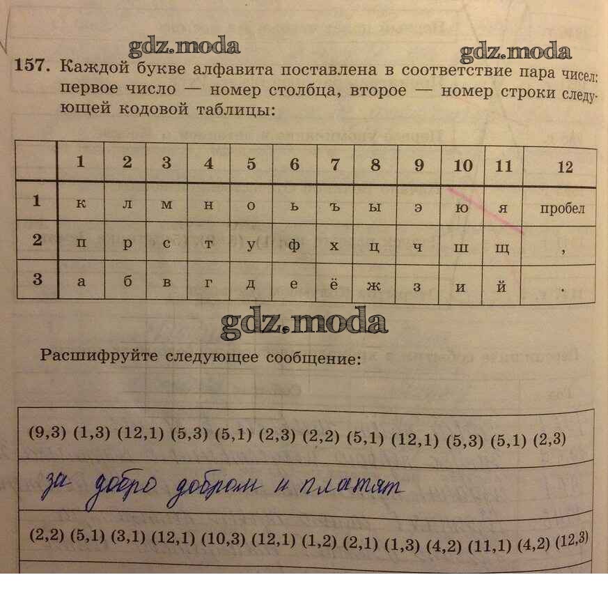 ОТВЕТ на задание № 157 Рабочая тетрадь по Информатике 5 класс Босова
