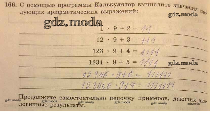 ОТВЕТ на задание № 166 Рабочая тетрадь по Информатике 5 класс Босова